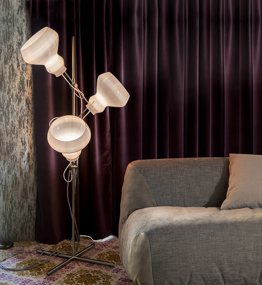 在现代和经典的环境中都很理想,个性也很丰富,这个斑点灯被设计成一个毫无疑问的原创物品。由于对大自然的蜿蜒形状的重新诠释,它在任何环境中都产生了一种原始的景观效果。高度可调节、支架可以旋转的金属阀杆支撑着三种不同颜色的玻璃灯罩,它能均匀地、定向地发光,且可以调节光的强度。