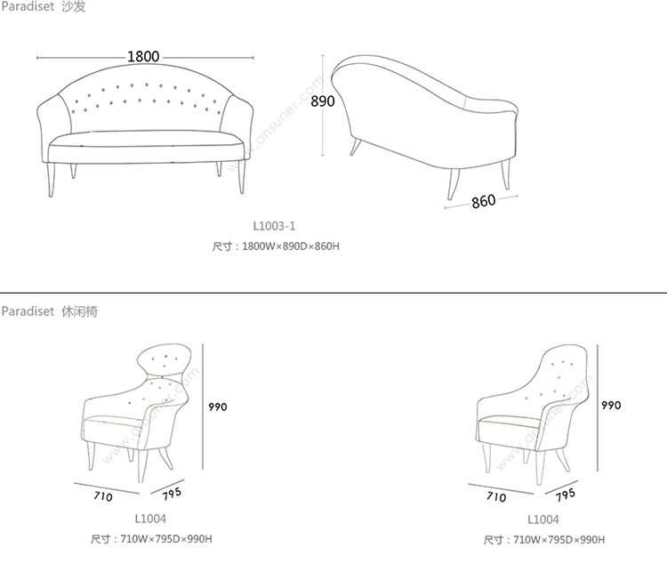 Paradiset 沙发 系列尺寸/示意图