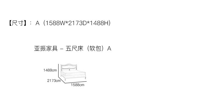 亚振家具 - 五尺床(软包) 产品尺寸/示意图