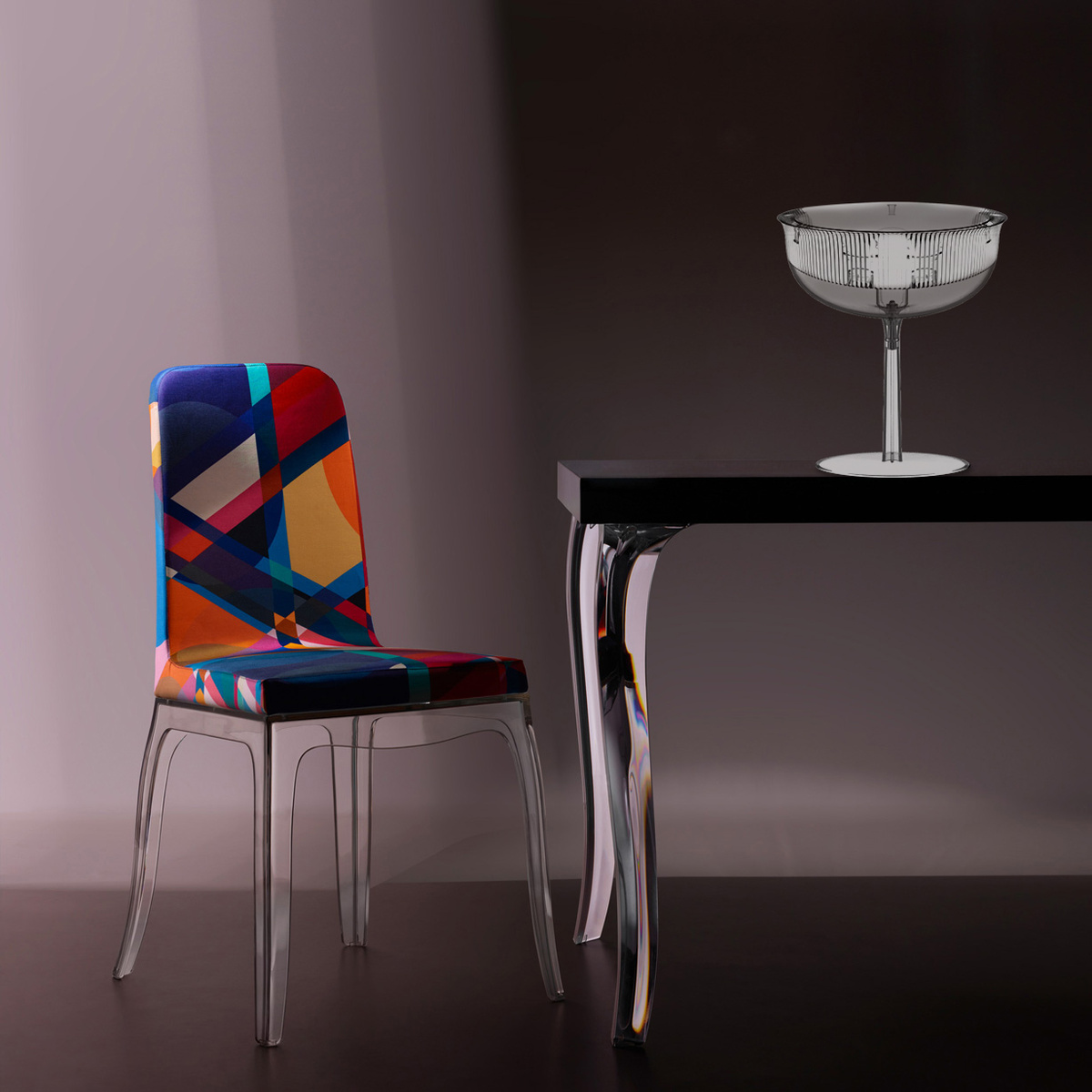 这款经典的水晶玻璃从原来的比例中拿出来,变成了三种不同形状的台灯,类似于香槟长笛、高脚杯和圣杯。