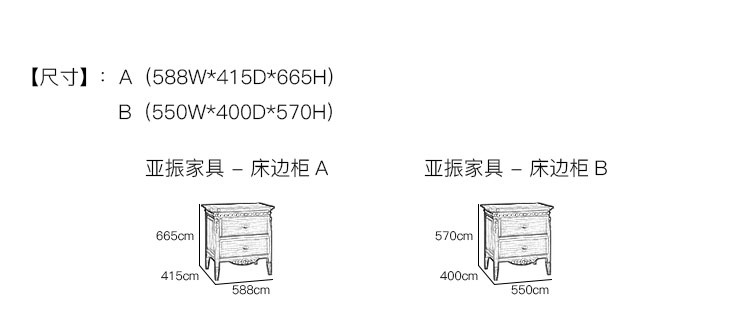 亚振家具 - 床边柜 产品尺寸/示意图