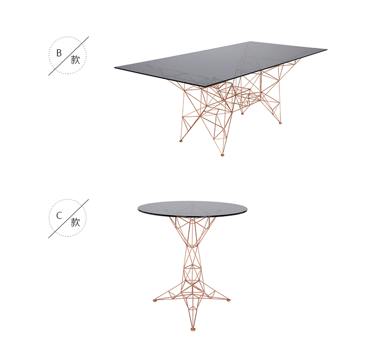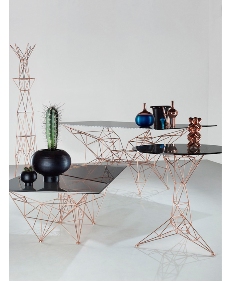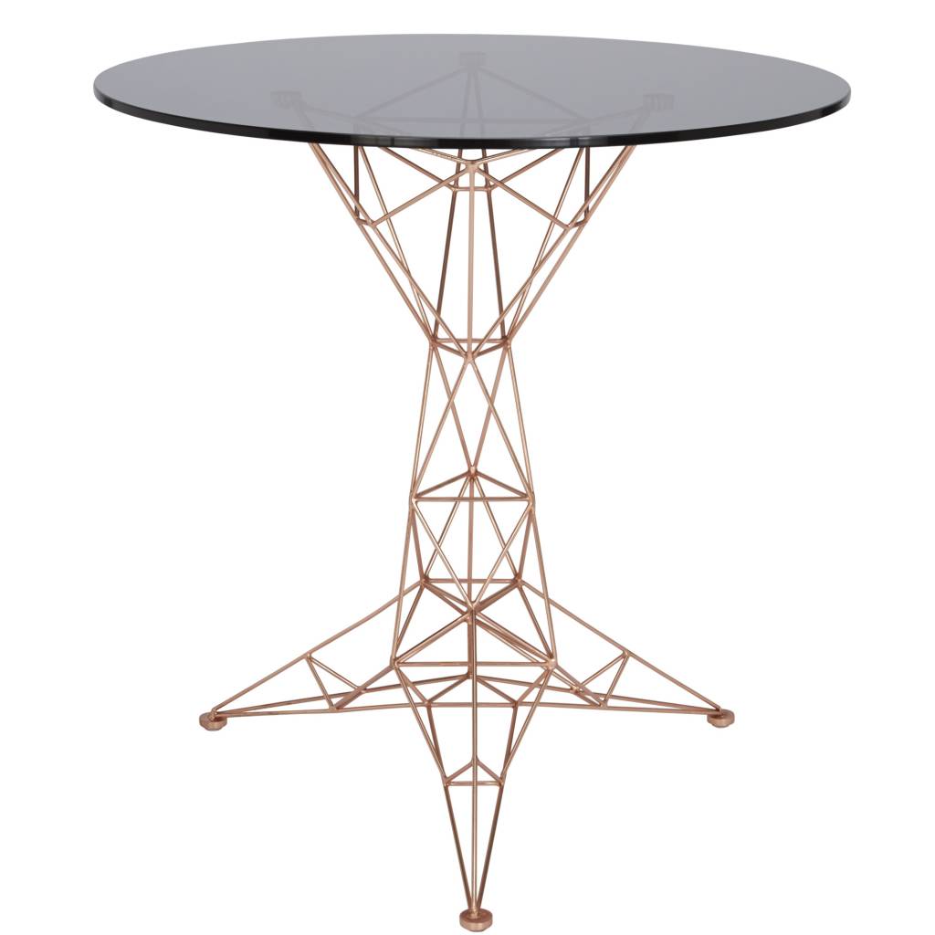 汤姆迪克森的灵感来自桥梁,塔和空间框架创造了这个美丽的塔咖啡桌。塔咖啡桌是一个焊接镀铜钢棒基础和烟熏玻璃顶部的组合。半透明,重量轻,功能强大的雕塑。