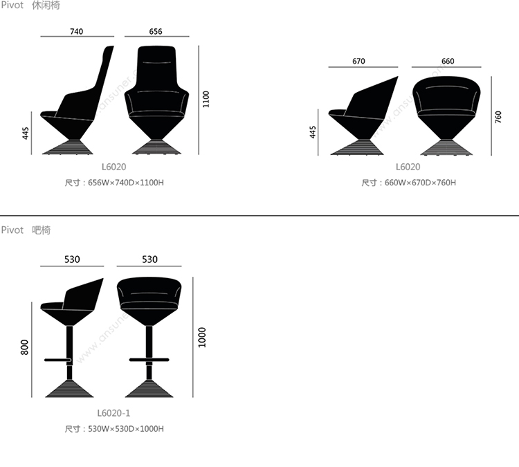 Pivot 休闲椅 系列尺寸/示意图