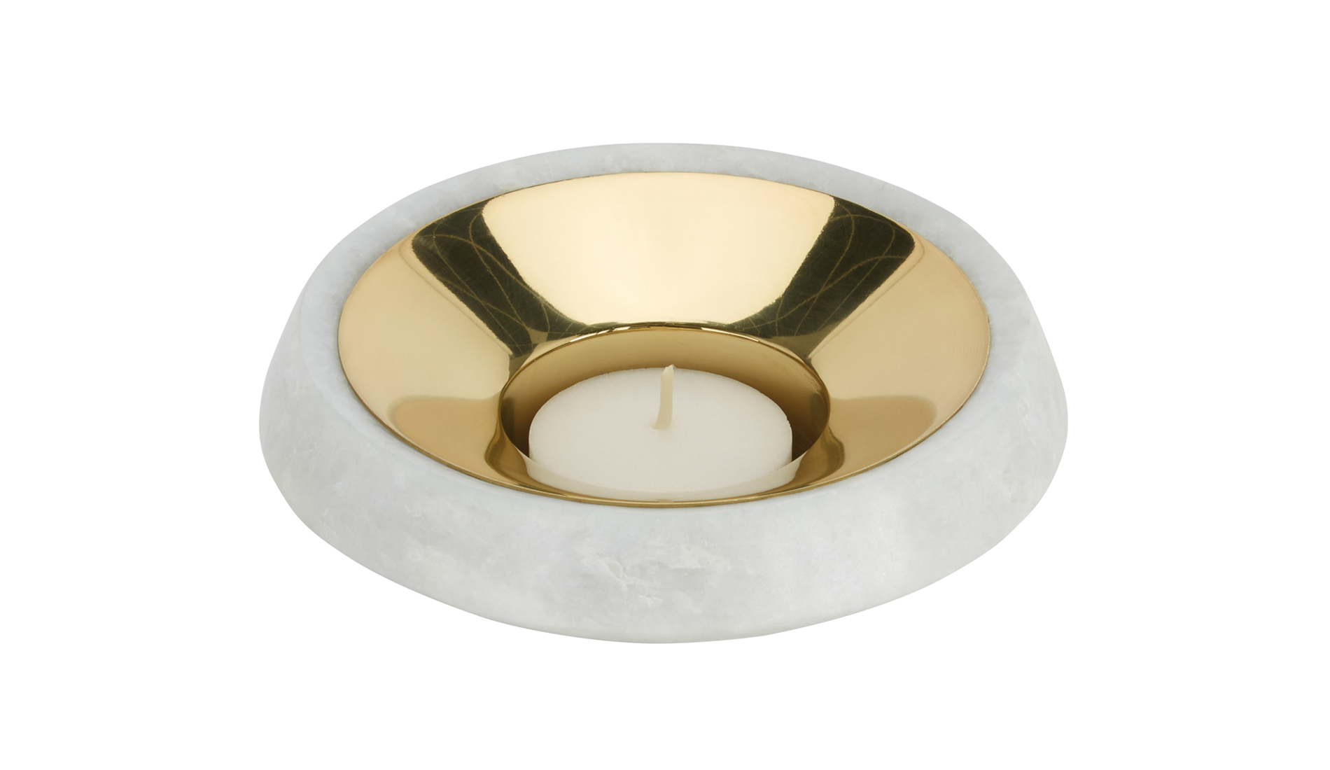 一个优雅的石茶灯座黄铜,包含一个黄铜插入物,反射蜡烛的光,放大令人愉快的,温暖的辉光。