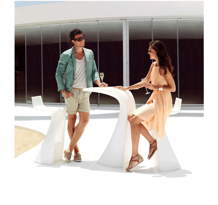"翼系列包含翼台和翼吧凳,由设计大师oaquín Torres和Rafael Llamazares设计,它造型以一种动态的方式将直线和曲线编织在一起。这些极端曲线和角度,在最新的体系结构中,已经达到了家具设计典范,通过运用自由的、 微妙的、 有机的线条,以运动的形态,分离本身刚度。这些都是大胆的创新,构成了巨大的视觉冲击,令人印象深刻,达到雕塑和动态意义。"