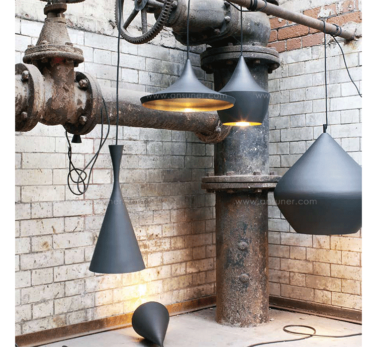 lamps series of brass beat light is a series of suspended luminaires by tom dixon. the lamps are handmade brass produced and receive their black aubenfarbe later. the beat lights differ in the form of their screens.beat light wide has a shallow but wide screen. beat light stout has a compact, rounded umbrella. beat light fat is small, but far and compact. and beat light tall is funnel-shaped and oblong.simple black housing all lamps is their simple black appearance together. the various screens but for different lighting. the brass one home is due to the different forms of different highly visible, why the lights in different but always as "related"remain identifiable.black exterior and interior messingfarbenes the black exterior and the brass one, bright home, giving the light an interesting and geheimnissvolles appearance. nevertheless, the beat light lamps are due to their simple forms and colors in each institution, the second look, but certainly a highlight that the views of themselves.the beat light lamp by tom dixon of brass in black in the variants produced wide, fat and tall. the lamps series is also in variations of brass in other colours.