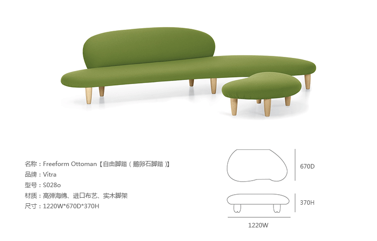 鹅卵石沙发( Freeform Sofa)是由著名设计师野口勇设计的。这款沙发具有圆润的弧形,舒适的坐感,独特的设计等特点,这些特点让鹅卵石沙发成了家具界非常出名的产品之一;形体优美又充满活力,是现代、休闲、时尚的家具用品的不二之选。