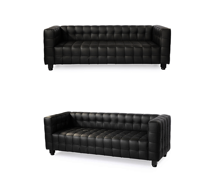 This high quality reproduction of the Josef Hoffmann Kubus Sofa features a handcrafted hardwood frame graciously lined with polyurethane foam.The surface is luxuriously soft to the touch, compliments of its premium 100%Top-Grain Aniline leather upholstery. This premium reproduction is generously proportioned to original full-scale size and cube count.Precision stitched & aniline leather piped tactile cubes create a thick body of cushioning that is so comfortable you’ll understand why this sofa has been a modern classic for nearly a century.For those looking for historic significance in midcentury modern furnishings,the Hoffman Kubus is a certain candidate.