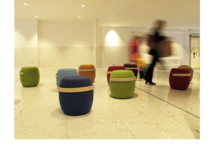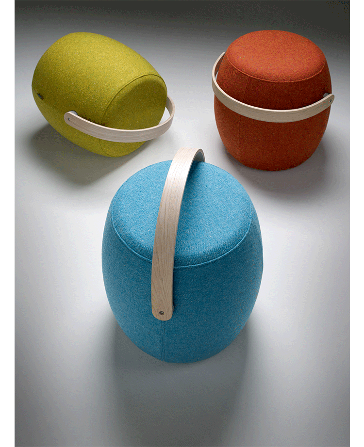 来自斯堪的纳维亚studio vision A&D的设计师和建筑师mattias stenberg设计了“carry-on”便携式小家具。这个设计的灵感来自于传统木桶的形式,设计师在桶表面包裹了一层毛绒布软垫,并搭配一个实木把手。“carry-on”有多种功能,它可用作小凳,脚凳或是摆放物品的台座。这个设计在2012年斯德哥尔摩家具/灯具展览会(stockholm furniture and light fair)上展出。同时,这个设计的展位也“greenhouse”展场的一部分,专门用来展示年轻设计师的作品。