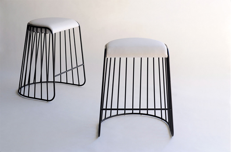 "The Bride's Veil Stool family’s unique language is meant as a graceful alternative to the archetypal bar stool.The double stool is the perfect solution for you and your date to enjoy sitting together uninhibited by separate stools.The strikingly elegant metal base is available in smoked brass,polished chrome, burnt copper,or powder coat,while the top is offered in COM upholstery.At every angle these stools offer a visual treat."