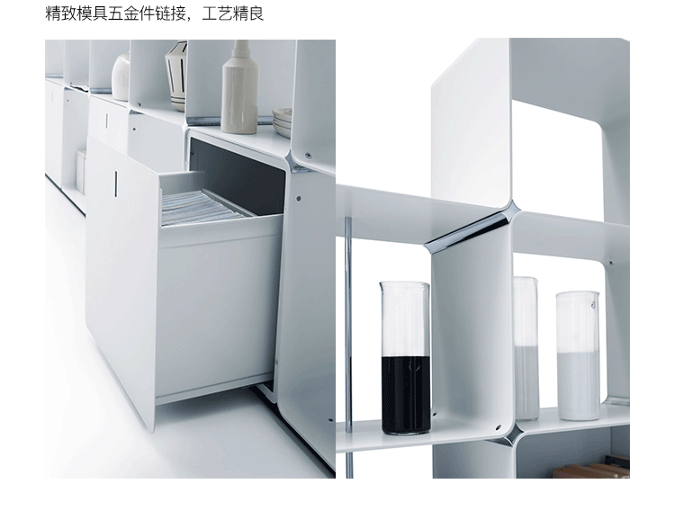 蜿蜒的和光的外观特征,使它成为当代环境中结合了货架上的功能,方便抽屉容器。 CWave似乎是由一个铝条建模本身创建一个架子优雅而且很讲究。 适合客厅,发现其理想在展览展示等环境和商店,在那里你可以创建复杂的和优雅的装饰。