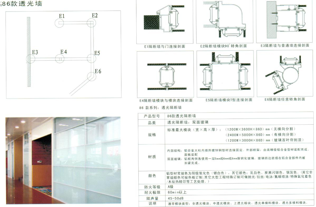 隔墙高度可做到3.5米,跨度上,面板跨度可做到2.4米(因为最大板材的限制),玻璃跨度可以做到2.6米(限定在铝合金框安全承重范围之内)。