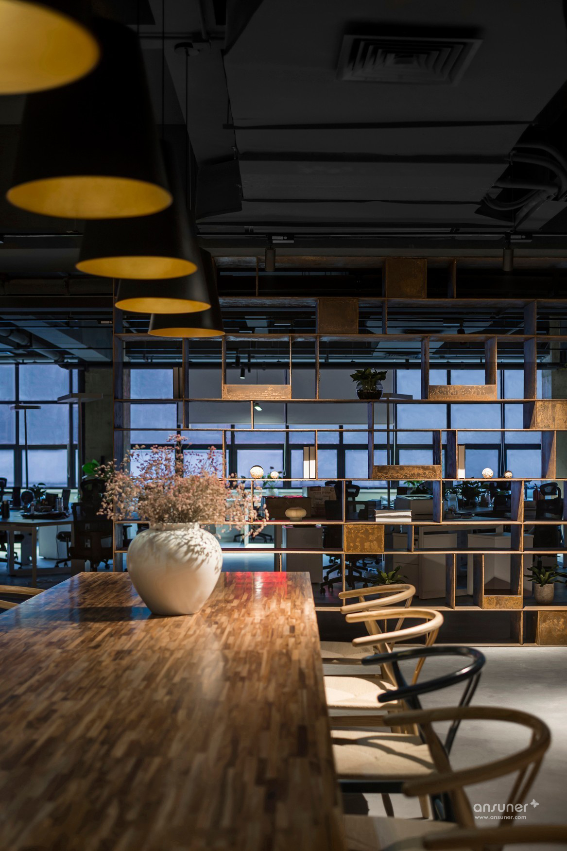 自然人文的办公区域,让室内与自然互相融合生长,疏解办公压力,使人身心愉悦。