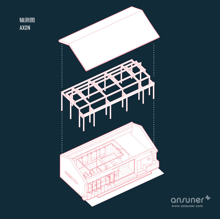 既为改造项目,设计的首要焦点是平衡老房子本身的古朴体貌和新加构筑之间的关系,让空间由内向外自然地拓展到街道景观中。屋内原有的木结构由于年久失修,部分已然歪斜破损,但经过简单的加固和修复,依旧牢靠可用。作为新添的构建材料,柚木配以钢材用来固定在选定框架中以保持原有空间结构的完整性。