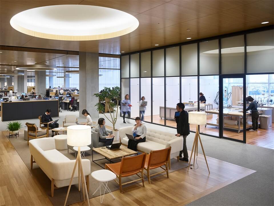 优衣库总部展示了一个民主的办公空间,它打破了传统的日本等级结构。小隔间被拆除,天花板被提高了,所有人都能看到最好的风景——在下属和上层管理人员之间的隔离时代已经过去了。