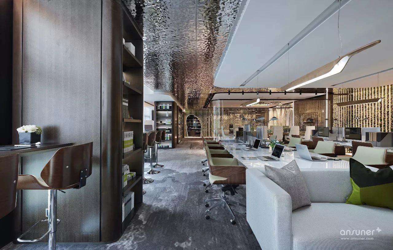 南京证大喜玛拉雅中心的建筑设计由MAD建筑事务所操刀,办公样板间则由设计师黄全设计,融入人与自然共生的设计哲学,重新构筑人与自然的和谐关系,在满足现代生活各种需求的同时,营造融合而富有生机的空间,实现人与自然在精神上的契合。