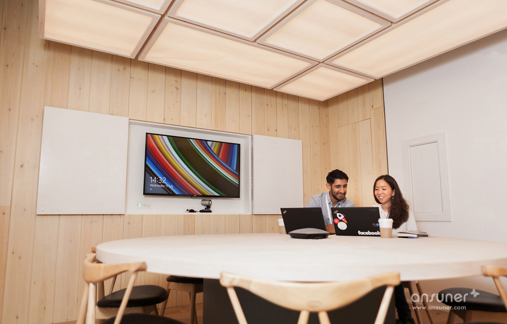 ▼“空中课堂”,讲座和演示的地方,这里有着雕塑般的吸音吊顶设计;共享空间 伦敦Huckletree联合办公设计欣赏