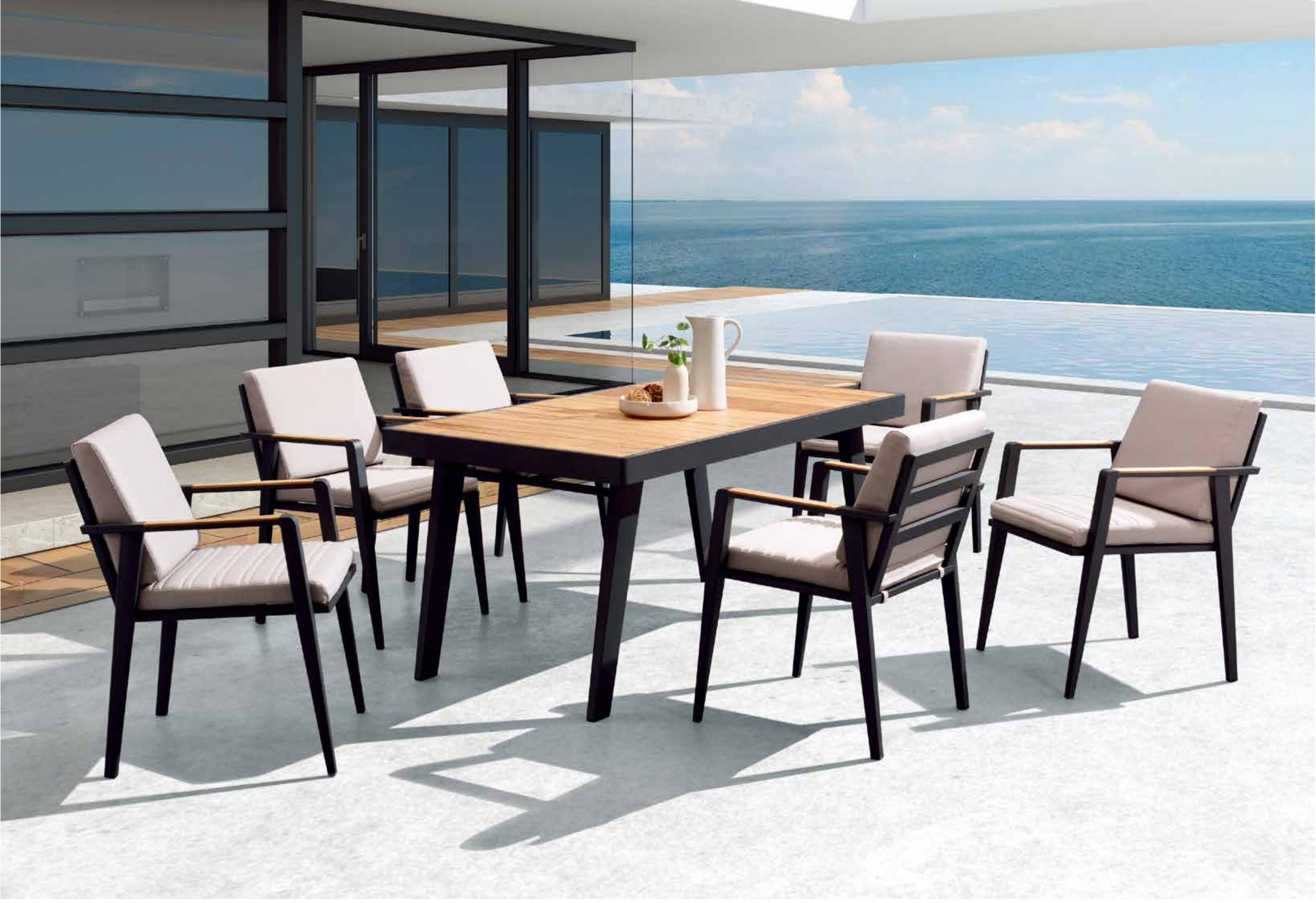伊莫堤户外休闲系列是诺菲系列灵感的延伸,它的主体大胆采用。大量铝材,凸显出金属的刚硬,巧妙搭配柔软的座背垫,又让它增添了一份柔情,所以我们称之为“伊莫堤”哲学。